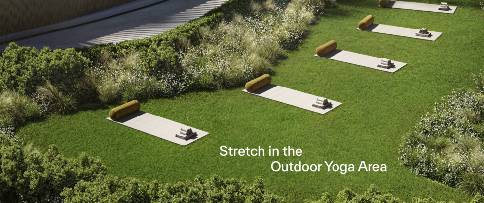 • Outdoor & indoor gyms, yoga areas